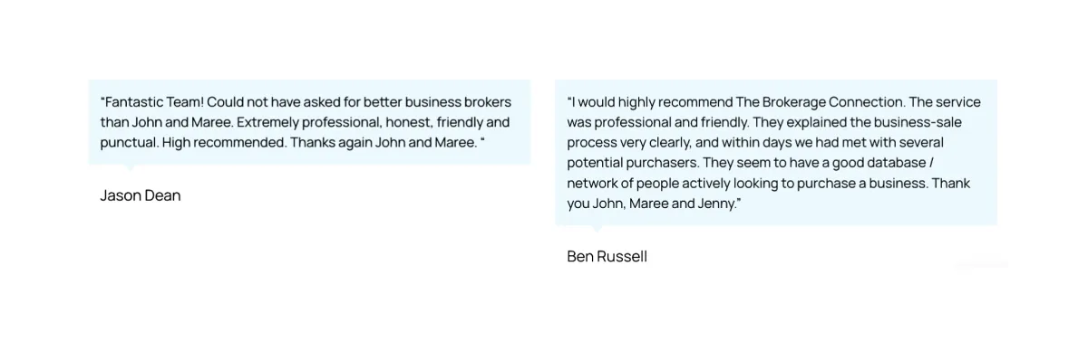 Buying or selling a business is a major decision, and having the right experts by your side makes all the difference. At The Brokerage Connection, we offer trusted, industry-certified business broking services backed by years of experience and a proven track record. Our specialists manage everything—from valuation and marketing to negotiation and settlement—ensuring a seamless, stress-free process for buyers and sellers alike.